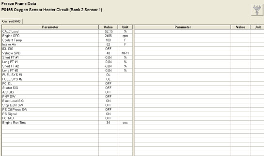 При P0115 1MZ-FE 2003г мне выдал вот такой список , то 2ARFE 2014 (при другом коде) уже вот такой.Freeze Frame