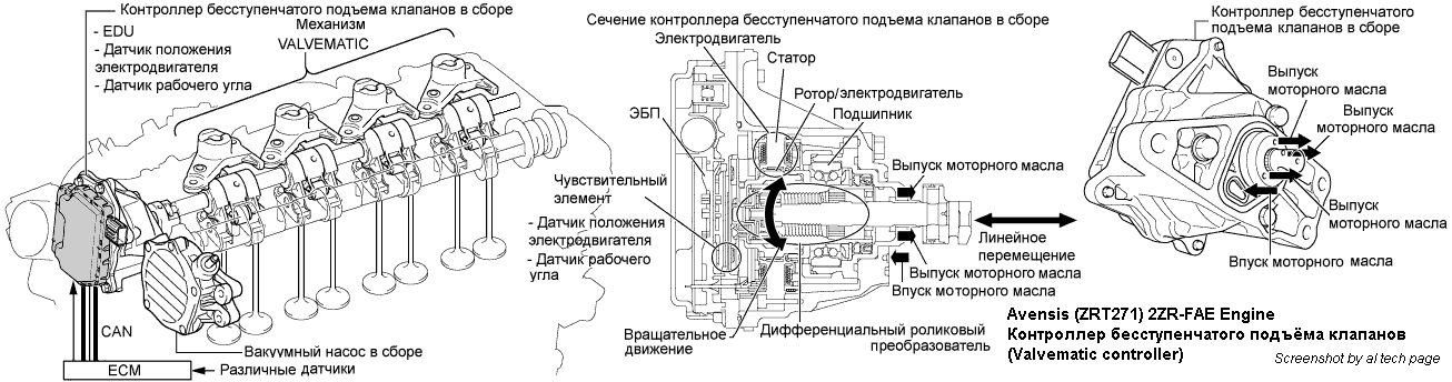 В европейских вариантах 2ZR-FAE проверить "вручную" датчик положения и датчика угла поворота Continuously Variable Valve Lift Controller Assembly невозможно, т.к. БУ их данные получает по CAN Bus.