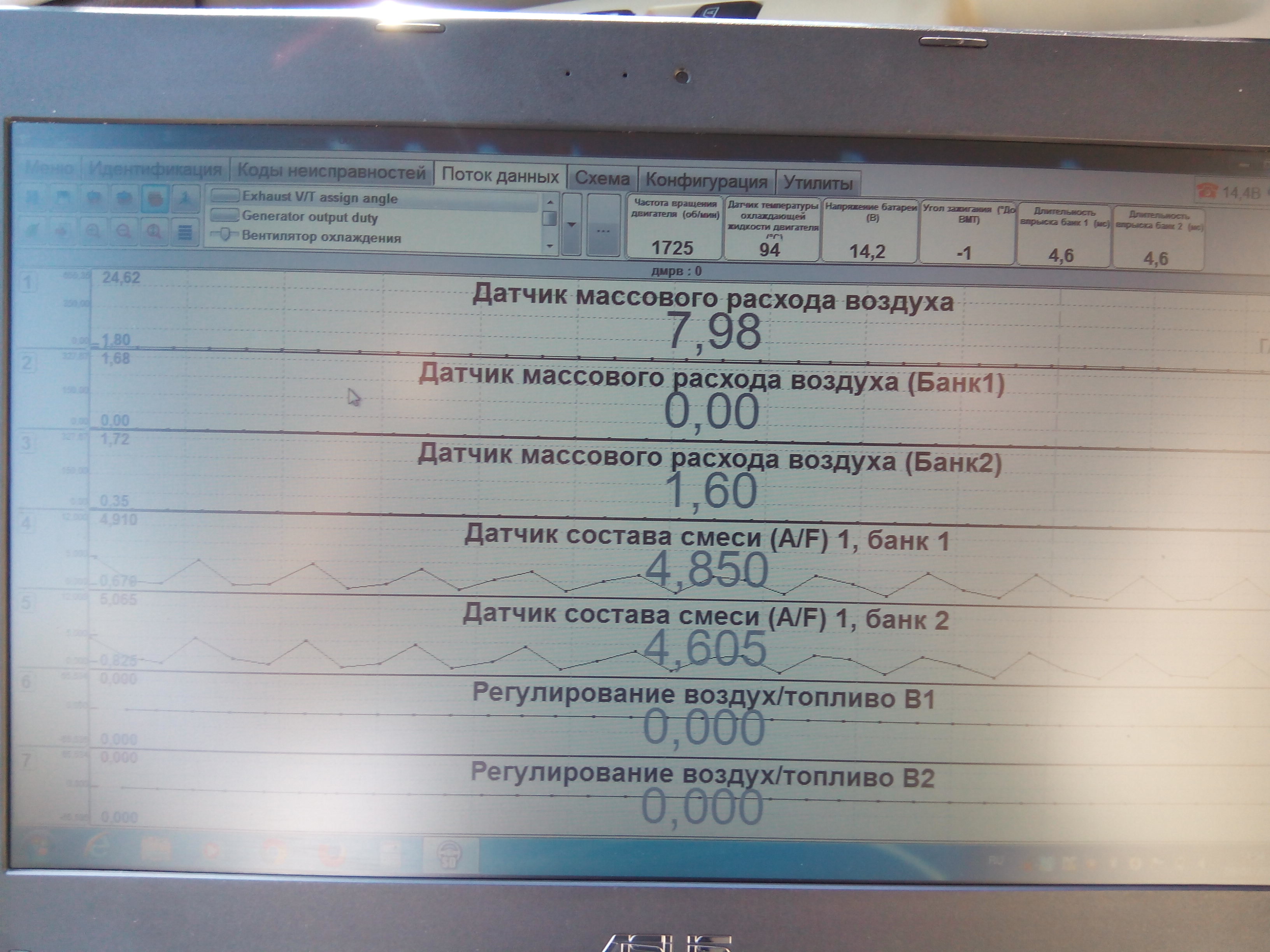 Думаю решающим условием было ограничение потока воздуха герметиком,и температуру со щетов сбрасывать тоже не стоит.Когда пытался в самом начале сделать адаптацию,то прогревал двигатель до 90 градусов.А так как после чистки обоих сразу дросселей обороты плавали с 1200 до 2000 температура быстро доходила до 105 градусов.На третий вопрос сложно ответить,так как очень беспокоился о удачном завершении ремонта,в противном случае были бы неприятности(финансовые)и на соответствующие графы в консульте не смотрел,а в СД когда идет адаптация доп информация не выводится(мультимарочник все же).Коллега с официала говорил,что в двигателях с двумя дросселями чистку делают по очереди,с посл.адаптацийей.Попробую завтра на исправном FX35 провести адаптацию дросселя (он там один) при 75 градусах,а потом при 95.Посмотрим что получится.Надо же как то докопаться до истины! Владимир Петрович подскажите где я могу скачать сокращенные значения дата стрима и их розшифровку? И хочу поблагодарить Вас и коллег за подсказки!!! Да осилит дорогу идущий! :wink: