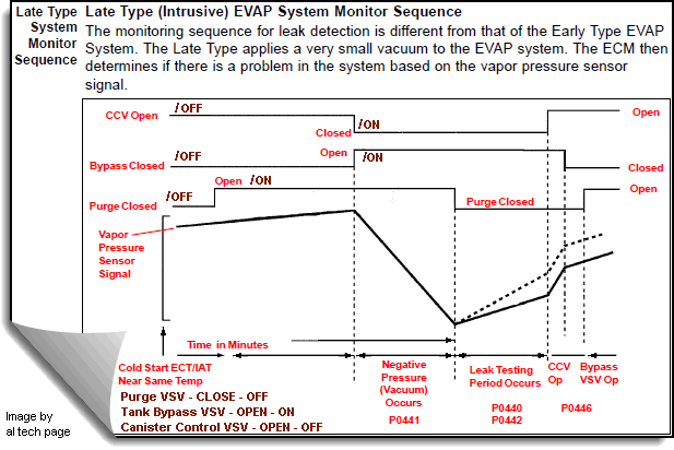 Marcinkevich писал(а):Пока не смог найти аналогичный документ с детальным описанием теста EVAP применительно к моей системе типа Late Type (Intrisive) с дополнительным Bypass Valve и Canister Closed Valve.