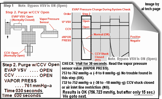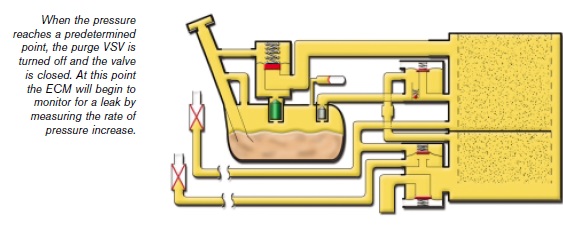 ... Next, the ECM will close the CCV and open the bypass VSV while continuing to operate the purge VSV. This will lower the pressure in the EVAP system