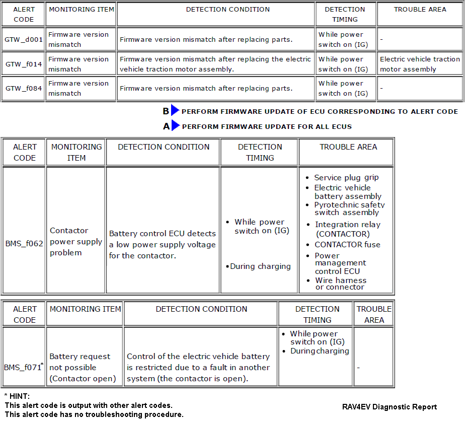 Выдержки из описания этих кодов в RAV4EV (2013-2014) Repair Manual: