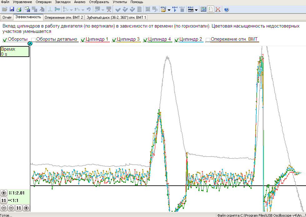 Саша-Ирпень писал(а):... Попробовал засинхронизироваться по импульсам управления модулем зажигания. Но скрипт не захотел считать. Тогда подключил МЗ через свечной провод и все заработало. Ну вот, "бесполезный" скрипт показал, что проблема в 1-ом цилиндре.