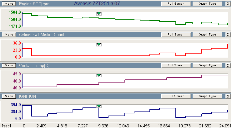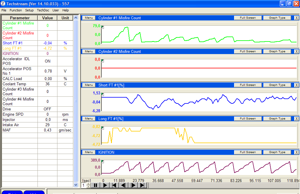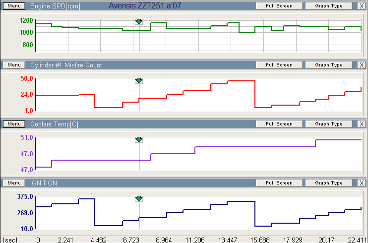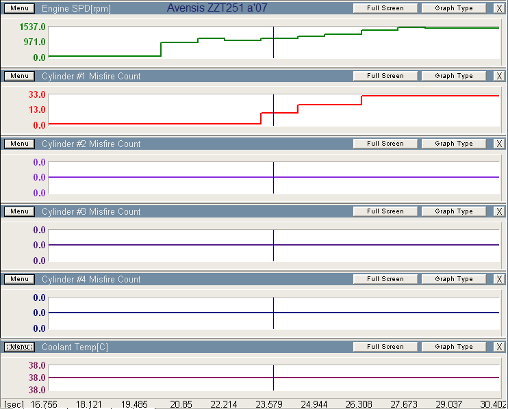 Также, при просмотре All Data, я наблюдал, как в первом цилиндре счетчик считает Misfire: