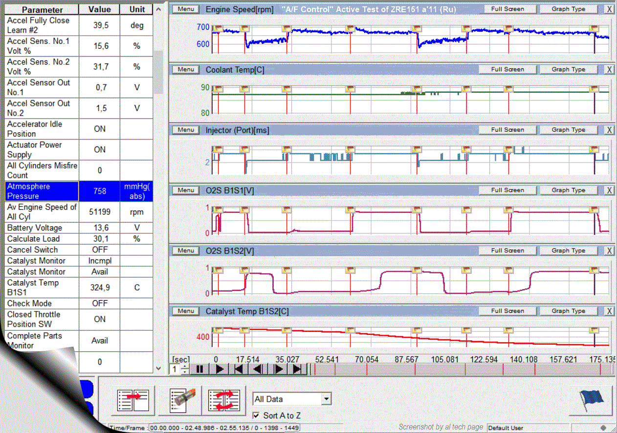 Следует учитывать, что у катов Oxygen Storage Catalytic ощутимо другие критерии неисправности и для них особенно значимы ещё и результаты активного теста "A/F Control":