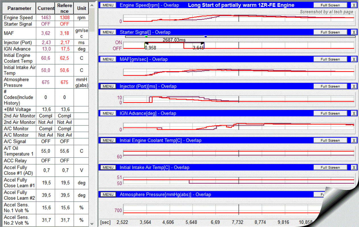 При активном тесте "A/F Control" и/или при "Injection volume for A/F sensor" в перечень обязательно включаются (при любом раскладе) такие параметры:
