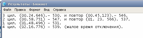Как проводить активные тесты я себе уже немного представляю. Теперь, хотелось бы научиться их анализировать. Сегодня взял файл теста Fuel cut и попробовал его проанализировать. Для этого поставил режим Meter и определяя номер цилиндра по флагу, (2-ой и 3-ий цилиндры были записаны дважды, а 4-ый отключался на очень короткое время), находил самое большое падение оборотов. Результаты записал в некое подобие таблички:
