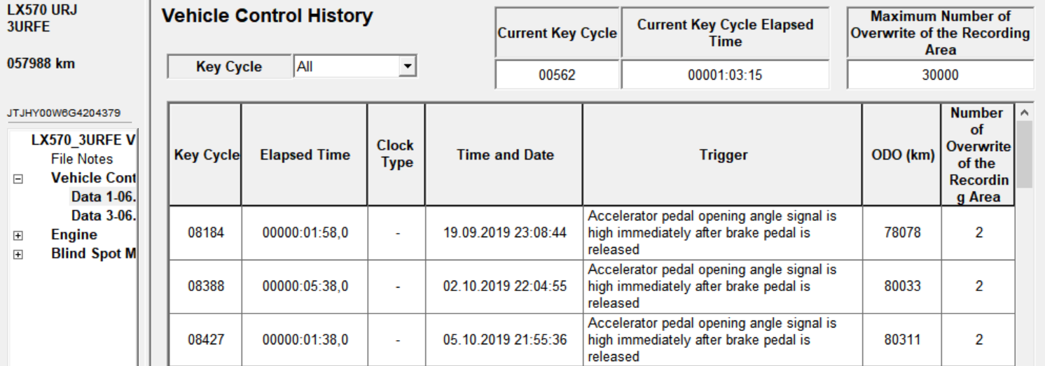 При удаленной диагностике в связи с необходимостью перепрограммирования* выяснилось, что в этом ангольском Lexus LX570 (г.Луанда) перед продажей пробег был смотан на 90 тысяч км И заодно, стало известно, что несколько лет назад (при реальном пробеге 78 тысяч км) этот Лексус побывал в аварии: * TSB Update. Health Check Results after ECT reflash:END писал(а):"Отмотались" мотальщики-чесальщики спидометров Тойота.
