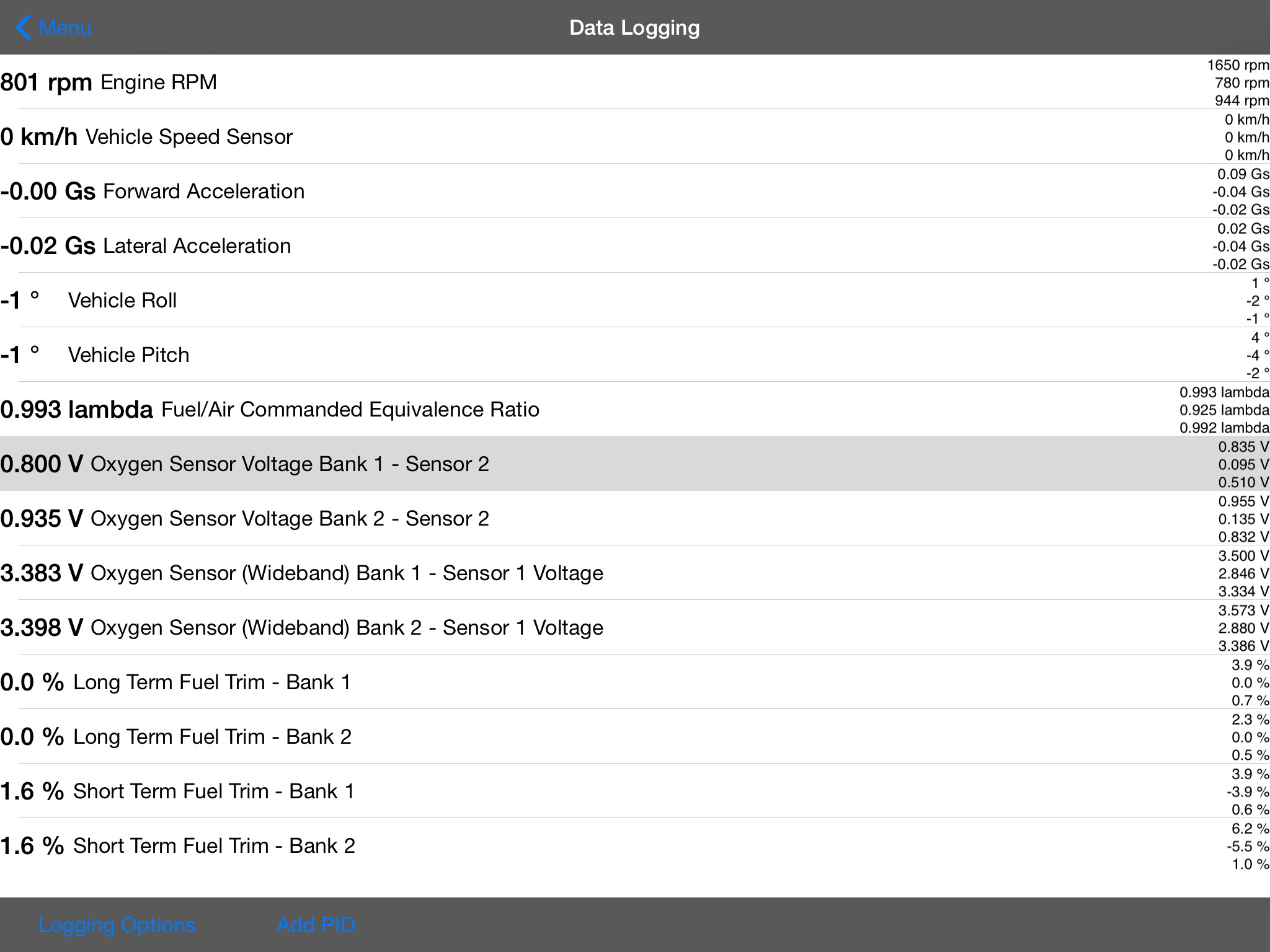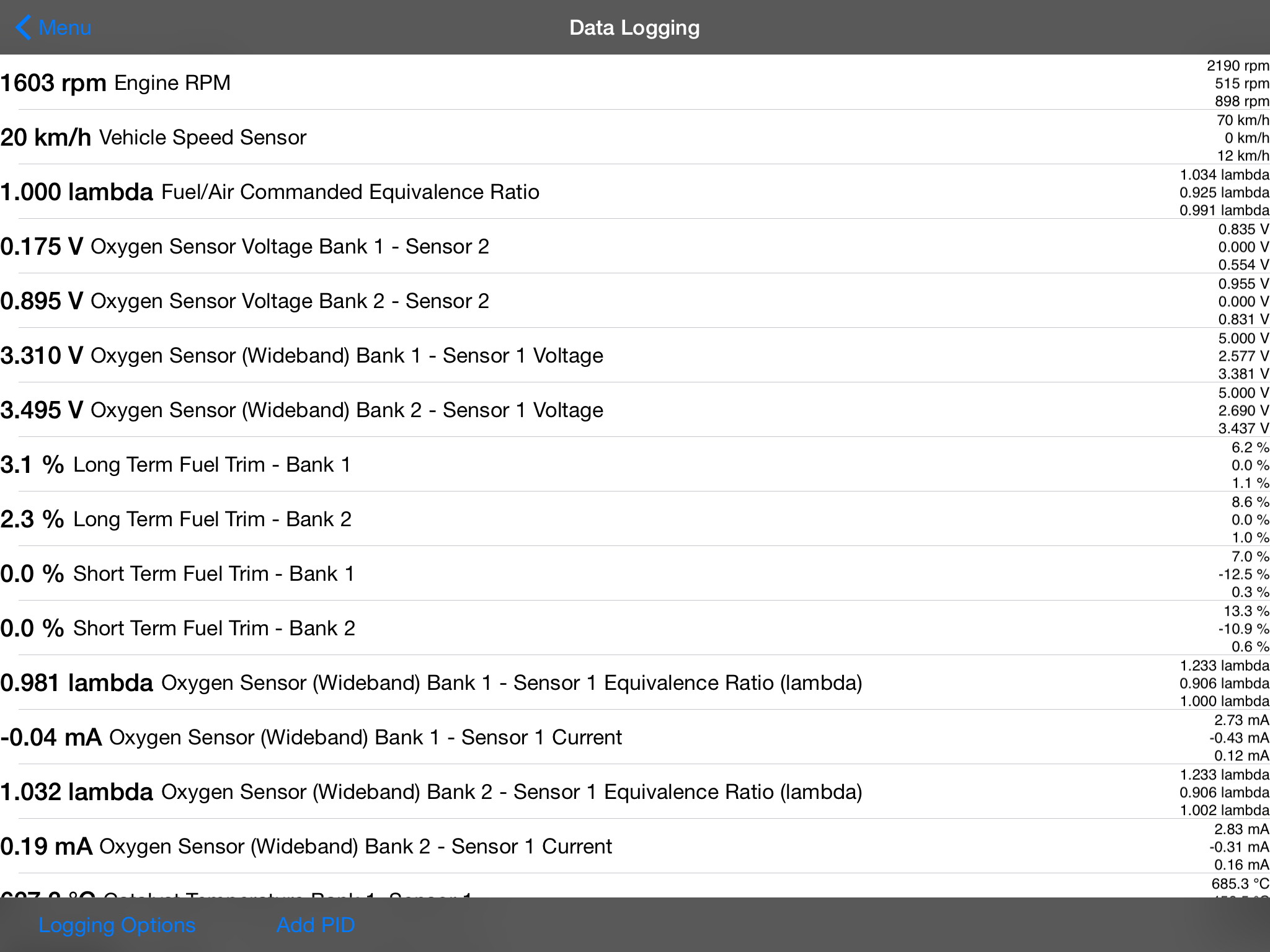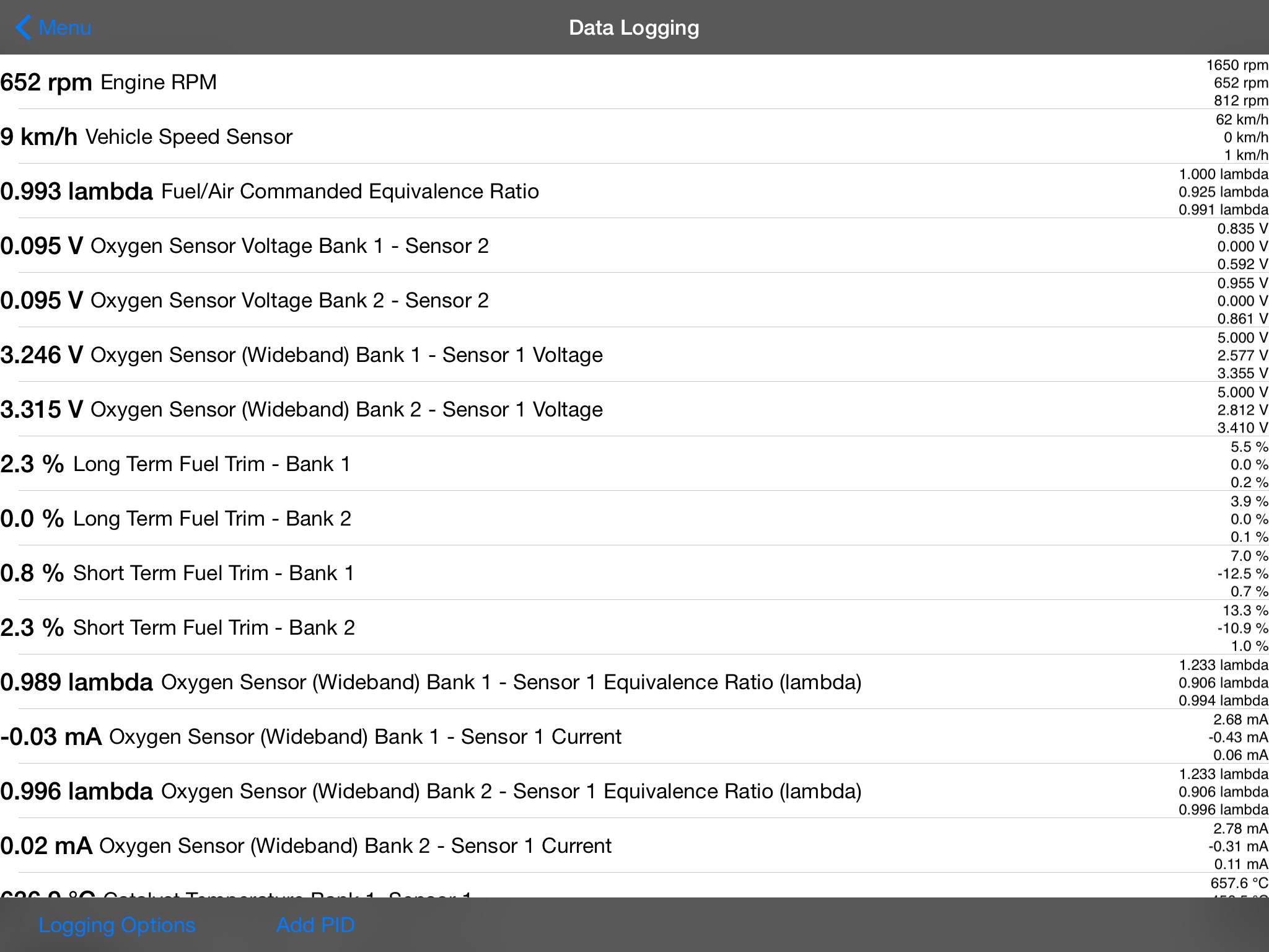 Вот попробовал еще графики по верхним лямбдам получить. Не очень познавательно. Это на месте стоя и немного перегазовывая.