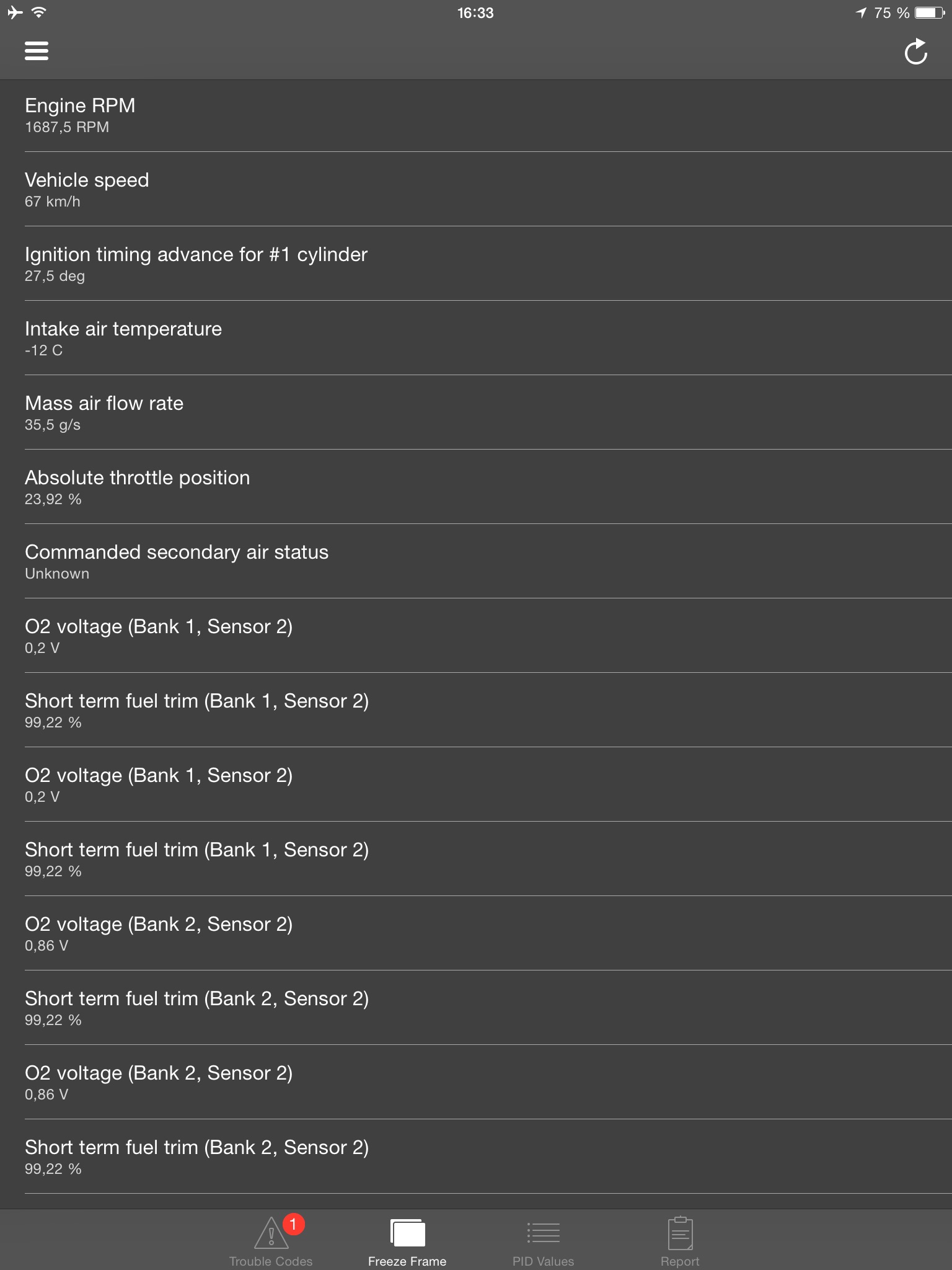 dashCommand Ios по моему не позволяет это сделать. Freeze Frame Data вытащить можно когда чек появится? Сейчас чека нет как такового.admin писал(а):Может ли ваш сканер показать Freeze Frame Data ?