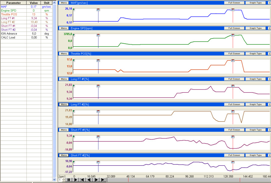 И обычно. но не всегда, численное значение MAF при ХХ соответствует объему двигателя: