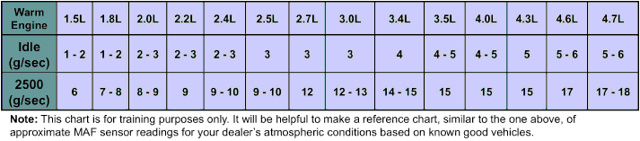 Потом, на пример в мануале 2uz MAF - 2.0 to 3.9 g/sec.: Idling в "живую" никогда такого не видел