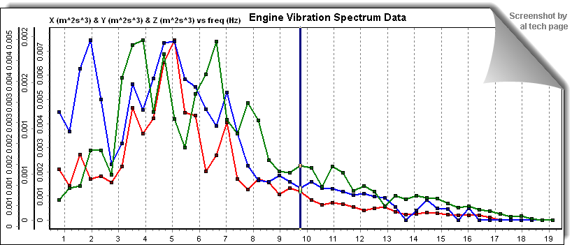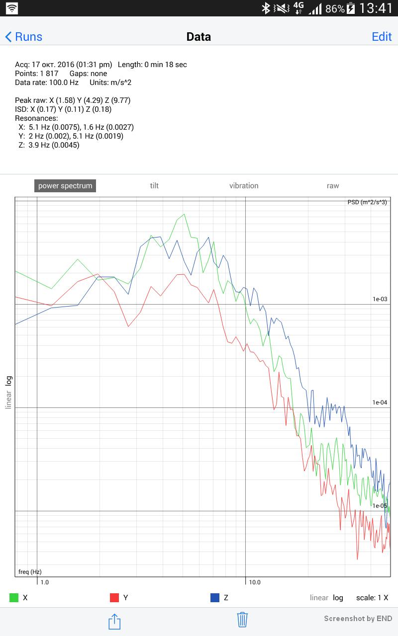 А это данные проверки уровня вибрации двигателя с помощью 3-х осевого аксельрометра: