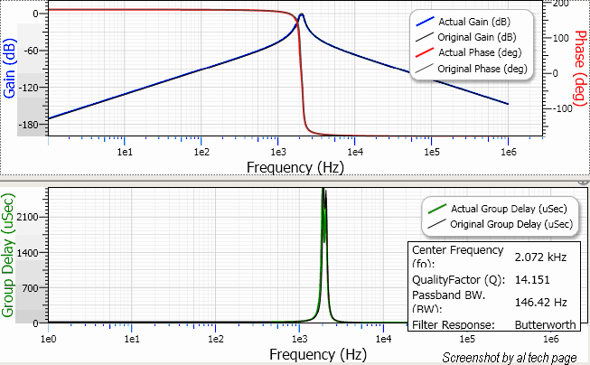 Наверняка интересно послушать посторонние звуки/стуки двигателя с помощью полосового фильтра Баттерворта с переменной центральной частотой с такими характеристиками: