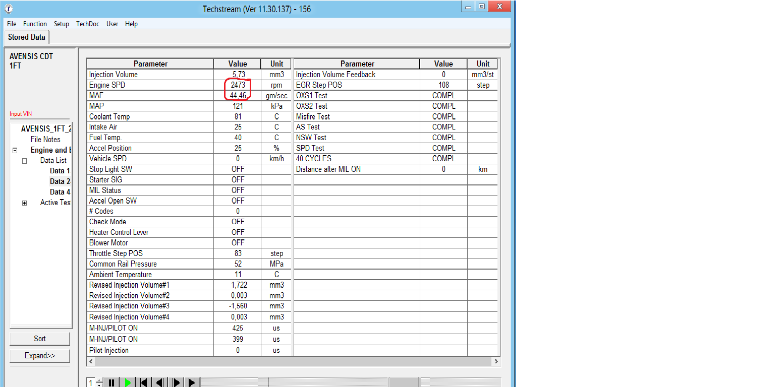 Лог при неподвижной машине есть в файле AVENSIS_1FT_25-09-17 153802.rar выше. Data4. В конце записи старался удержать 2500об/мин.