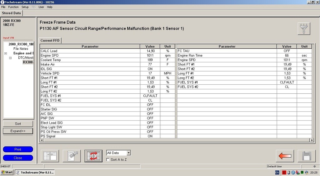 Одна из них заключается в том, что в FFD кода неисправности DTC P1130 (A/F Sensor Circuit Range/Performance Malfunction) указывается, что наличие этой неисправности подтверждено при температуре двигателя 189°F (87°C).