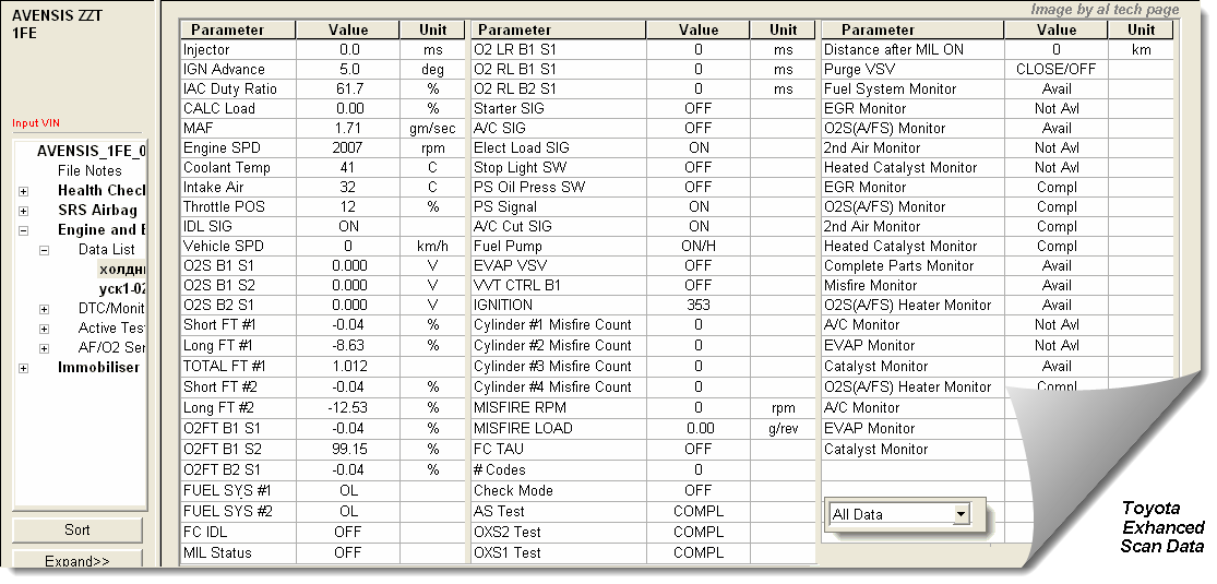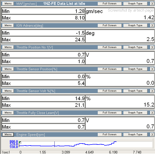 1NZ-FE Data at idle