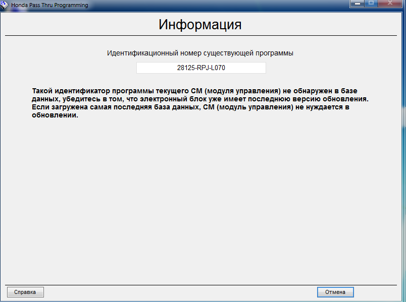 Curent ID показывает при попытке прошивки КПП этой хонды(выбирал Европу,машина дилерская),я так понимаю, что это текущее программное в TCM,далее пишет что не такого ID в базе.