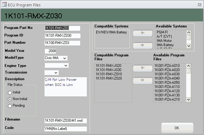 Что так? Ведь эта программа от American Honda Motor Co., Inc. для обеспечения процесса перепрограммирования и её БД как бы не обязана содержать в себе все файлы новых прошивок всех моделей Honda, тем более европейских