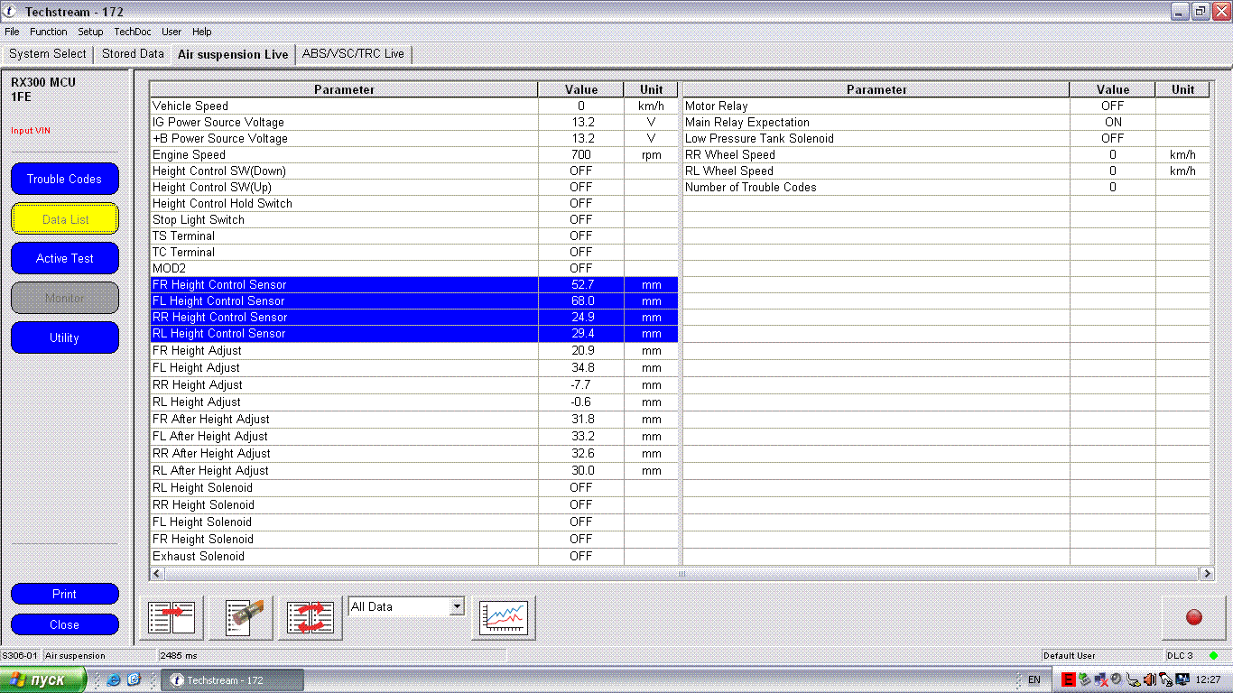 Столкнулся тут с настройкой пневмо подвески на RX300 c помощью TS, но там требовалось ввести какие то значения, в общем пришлось настраивать в ручную - крутя тяги датчиков....
