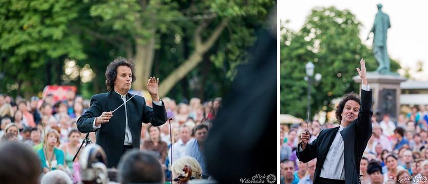Днями в рамках второго музыкального фестиваля "Black sea music fest" возле Дюка на Приморском бульваре в полном составе выступал Одесский филармонический оркестр под управлением легендарного Хобарта Эрла.