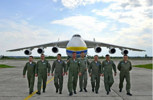 У меня сосед работает в фирме и клеит наклейки на самолёты, говорит, что клеили перед полётом на Мрию, там где хвост высота 4-го этажа. Экипаж,чуть ли не рота. А когда двигатели прогревают, то это буря.))
